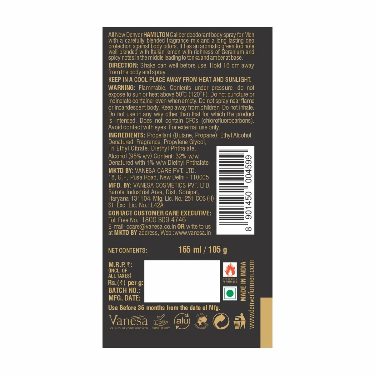 The top notes of green and cedarwood evoke the enthralling freshness of nature. The middle notes of Italian lemon with the richness of Geranium and spicy add depth and dimension to the fragrance while the woody and amber notes at the base intensify the spiciness, making Denver caliber body spray an ultimate choice.
