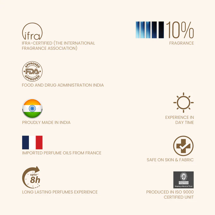 A long-lasting perfume formula that lasts upto 8 hours and is safe on skin and fabric.